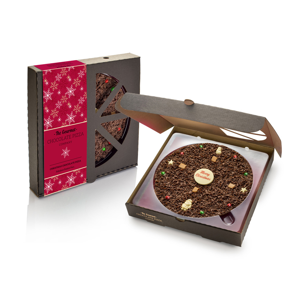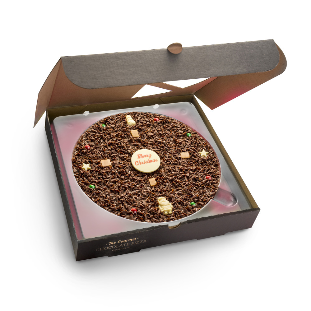 Every year, our customers go mad for our Christmas Chocolate Pizzas, and it's no wonder why. Every one of our Christmas pizzas has been carefully handmade with lots of care and attention from our small team of chocolatiers, using only the finest quality ingredients. This means that our pizzas look beautiful but never sacrifice on taste - it's the best of both worlds!